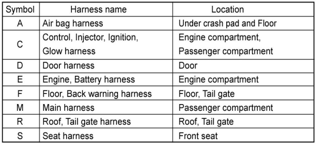 * It depends on vehicles, it is necessary to check the harness name symbol on the harness layouts for detailed symbol.