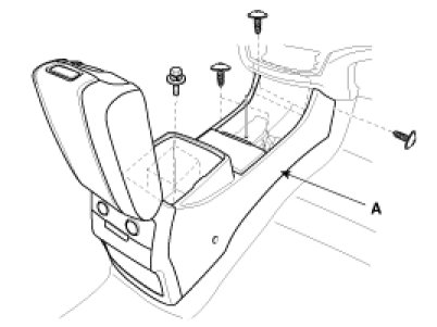 3. After loosening the console mounting screws, remove the floor console assembly (A).
