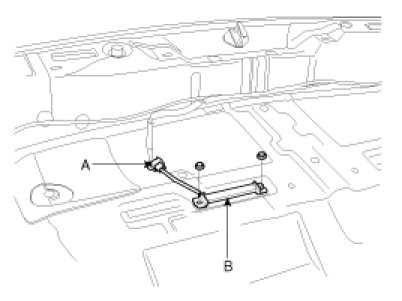 4. After loosening the smart key unit mounting bolts(B) and connector, remove the smart key unit (A).