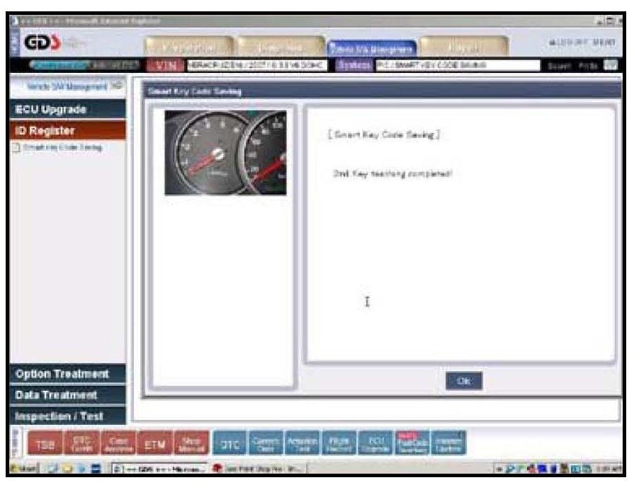 8. When 2nd key teaching has been completed, the screen shown appears, press OK.