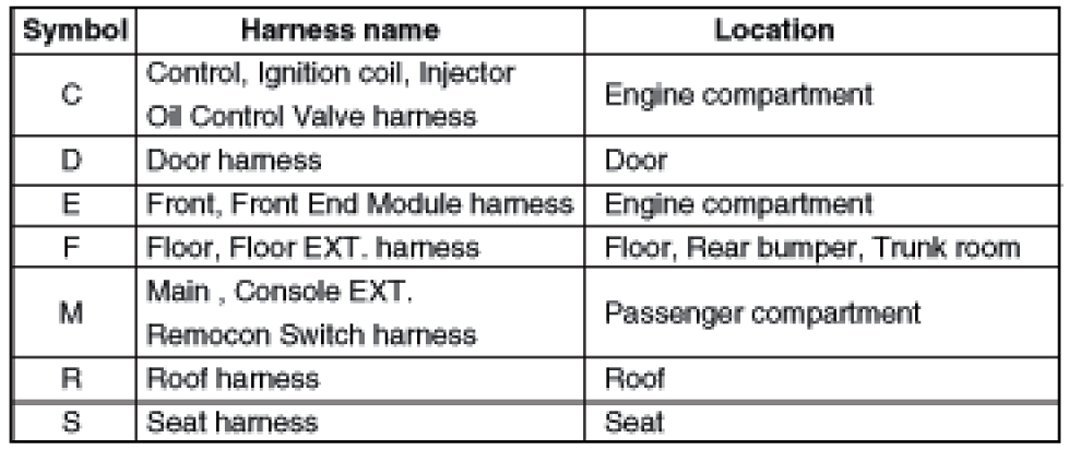 * It depends on vehicles, it is necessary to check the harness name symbol on the harness layouts for detailed symbol.