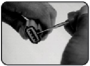 - Flat tip type: Removal of single locking male/female terminal from the connector.