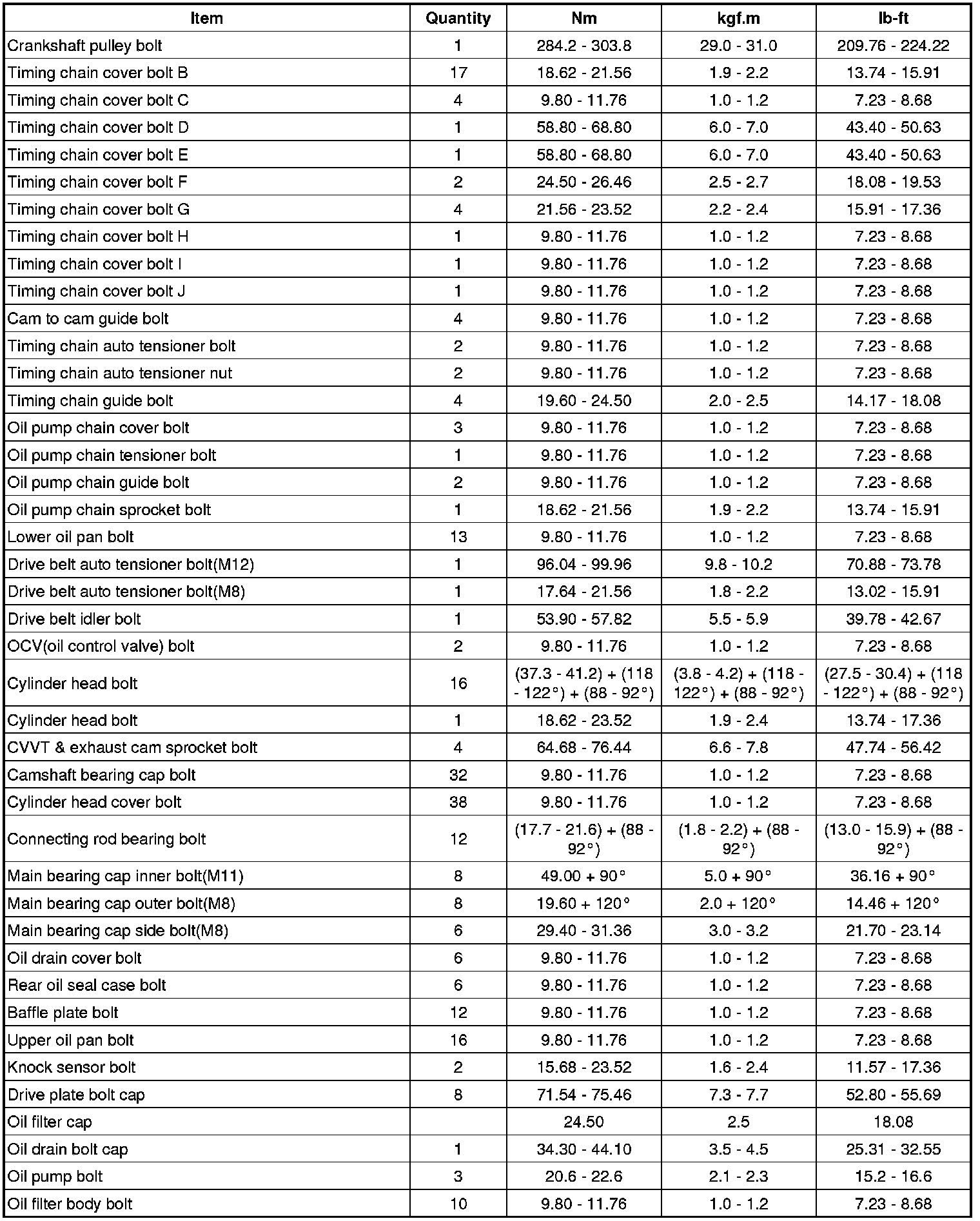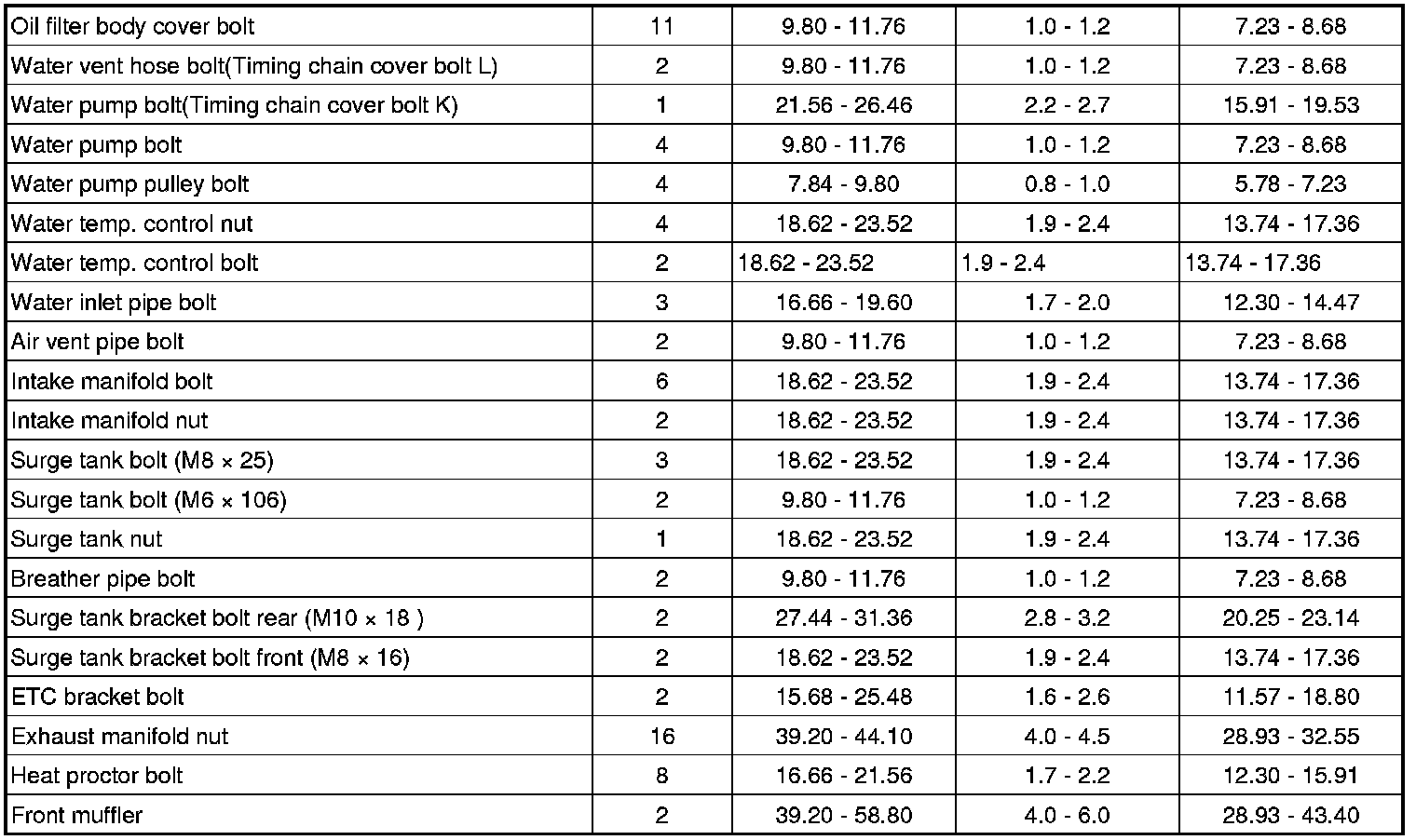 Tightening Torques