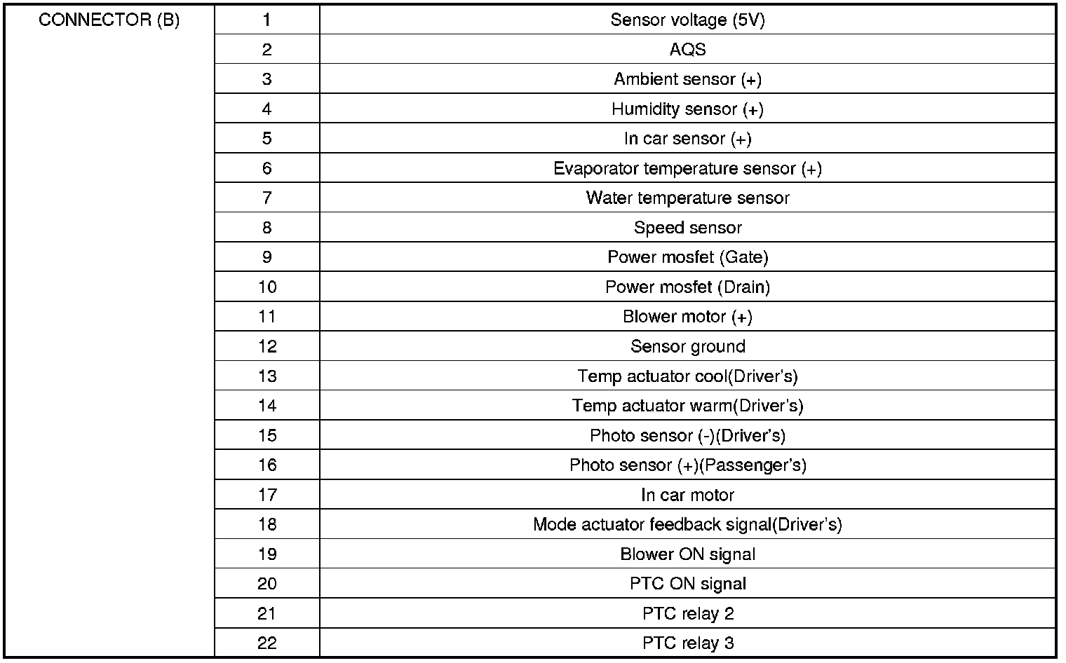 Connector Pin Function