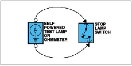 An ohmmeter can be used in place of a self-powered test lamp.