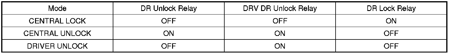 (2) Perform DR Unlock Relay output for 1s after 0.5s when the condition becomes to be KEY IN ON & DRV DR SW OPEN & DRV DR Unlock SW LOCK.