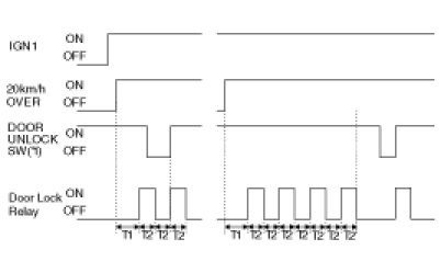 (2) On condition of IGN1 SW ON, turn Door Lock Relay output ON within T1 when keeping more than setting speed in (1). But, do not output LOCK if all Doors are LOCKED or FAIL at first.