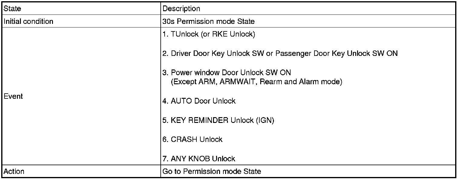 (2) In case of Door KEY LOCK (Unlock) signal of the passenger seat, handle as KEY LOCK (Unlock) of the passenger seat is inputted if the knob in the passenger seat is LOCKED (Unlocked) after checking it for 3s.