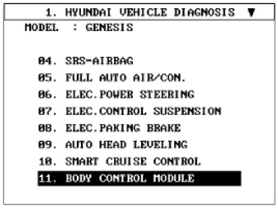 1. Connect the cable of scan tool to the data link connector in driver side crash pad lower panel, turn the power on scan tool.