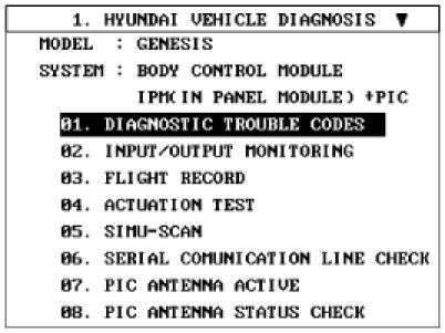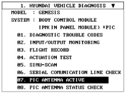 3. After IG ON, select the "PIC ANTENNA STATUS CHECK".