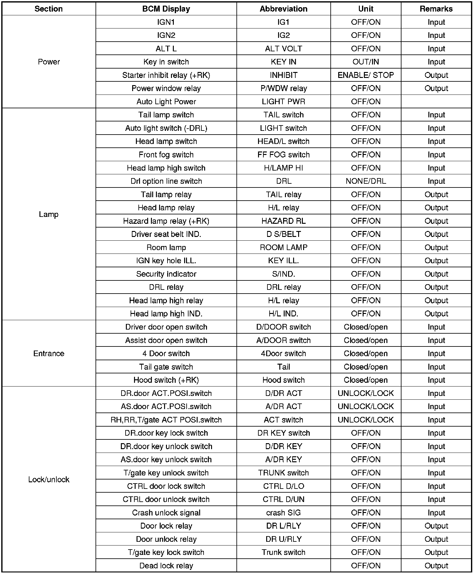 1. It will be able to diagnose defects of BCM with scan tool quickly. Scan tool can operates actuator forcefully, input/output value monitoring and self diagnosis.