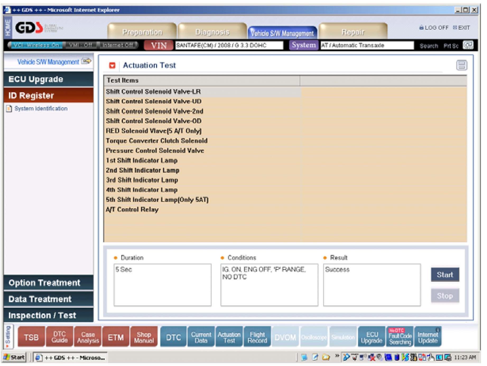 1. Using a GDS, check for DTC in both the "Engine" and "Automatic Transaxle" menus. Record the DTC and description.