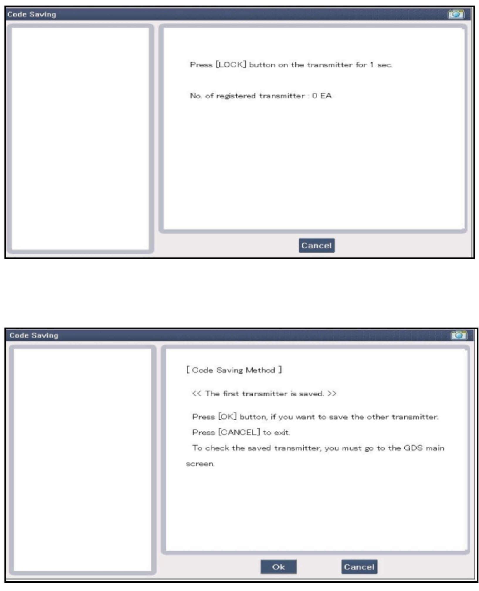 3. After selecting the "CODE SAVING" menu, press the "ENTER" key, then the screen will appear as shown above.