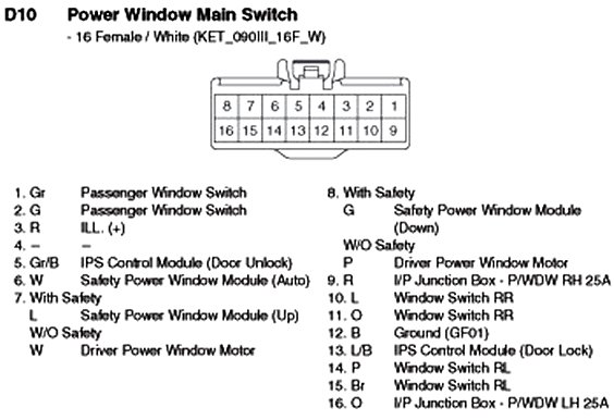 D10 Power Window Main Switch: