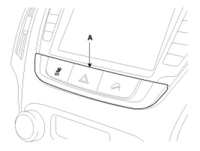 5. Using a screwdriver or remover, remove the hazard lamp switch assembly (A).