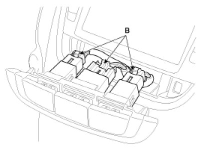 1. Using a screwdriver or remover, remove the floor console tray (A).