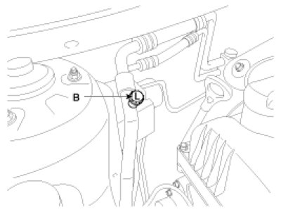 Recovery/Recycling/Charging System (A) to the high-pressure service port (B) as shown, following the equipment manufacturer's instructions.