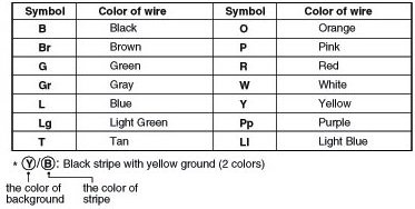The following abbreviations are used to identify wire colors in the circuit schematics.