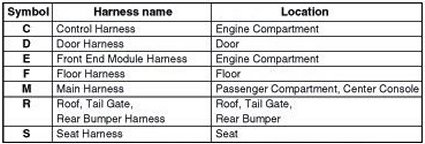 * It depends on vehicles, it is necessary to check the harness name symbol on the harness layouts for detailed symbol.