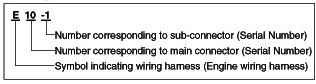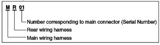 A Connector identification symbol consists of a wiring harness location classification symbol corresponding to a wiring harness location and number corresponding to the connector.