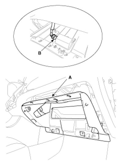 3. After loosening the mounting screws and bolts, then remove the glove box housing (A).