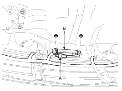 3. After loosening the antenna connector (A) on the right side of rear bumper and nuts (2EA), remove the interior exterior bumper antenna (B).
