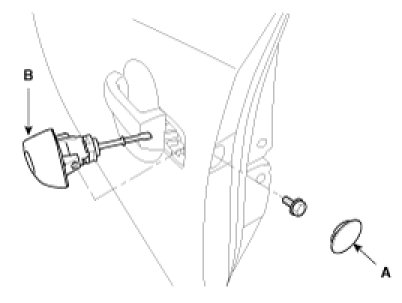 4. Remove the outside handle (A) after loosening the outside handle mounting screws.