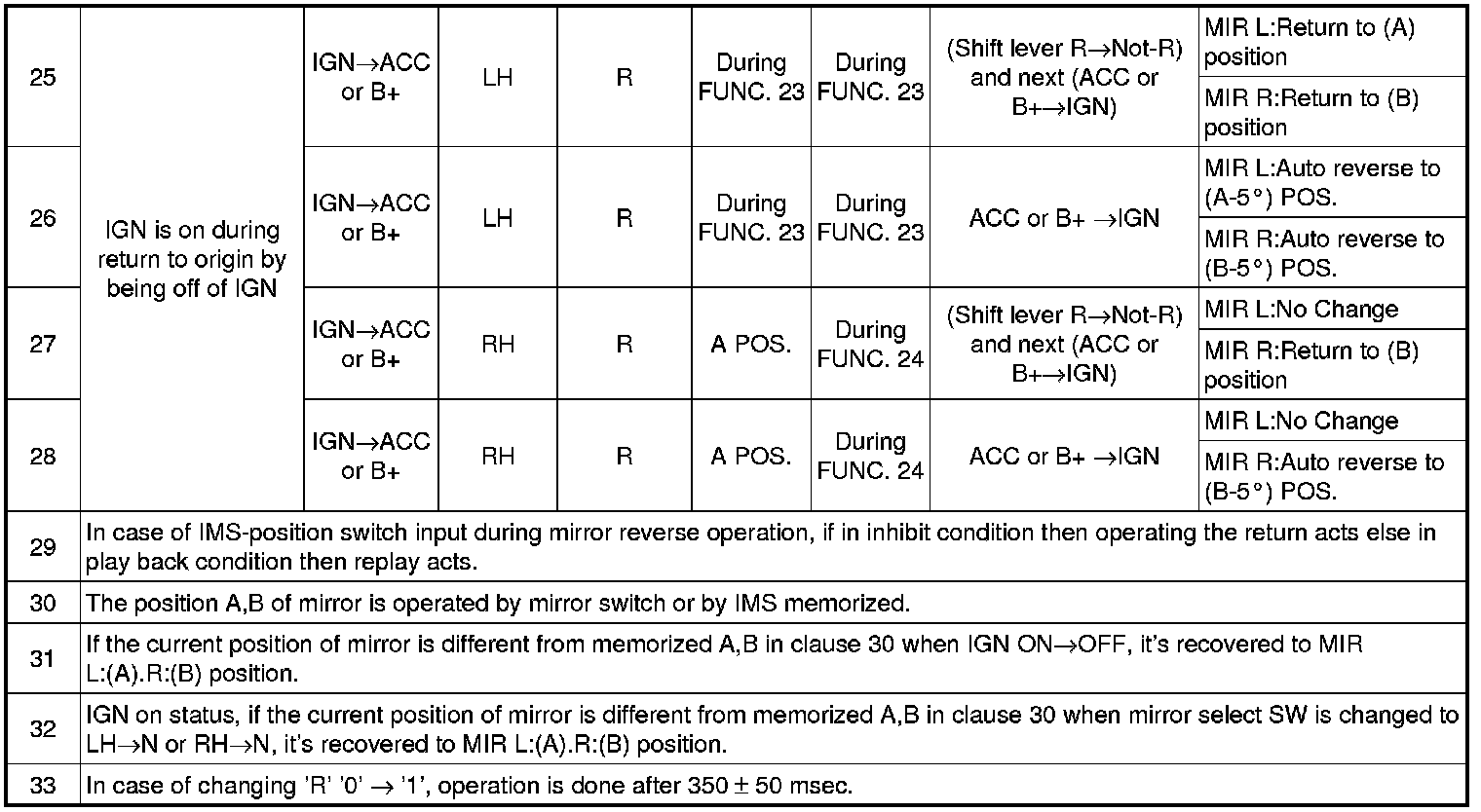 (2) The mirror driving signal should not output over 15 seconds continuously. (Both the memory reminding and the manual switching operation)