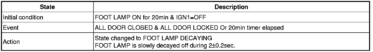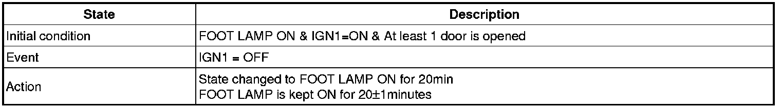 (3) Transitions from Foot lamp ON for 20min state: