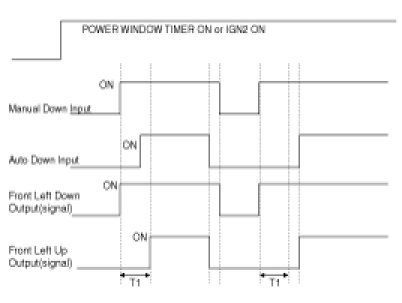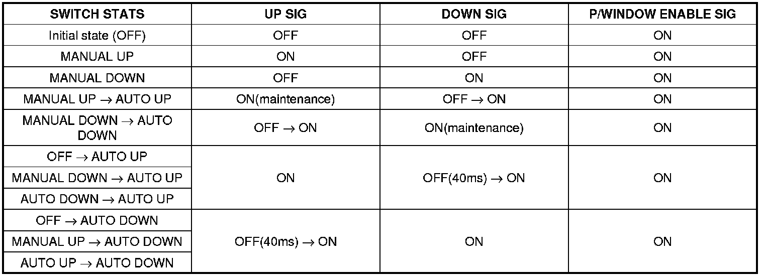 * At POWER WINDOW TIMER ( FROM BCM ) OFF & IGN 2 (DDM) OFF, independently of Switch' state UP SIGNAL and DOWN SIGNAL are OFF state preservation.