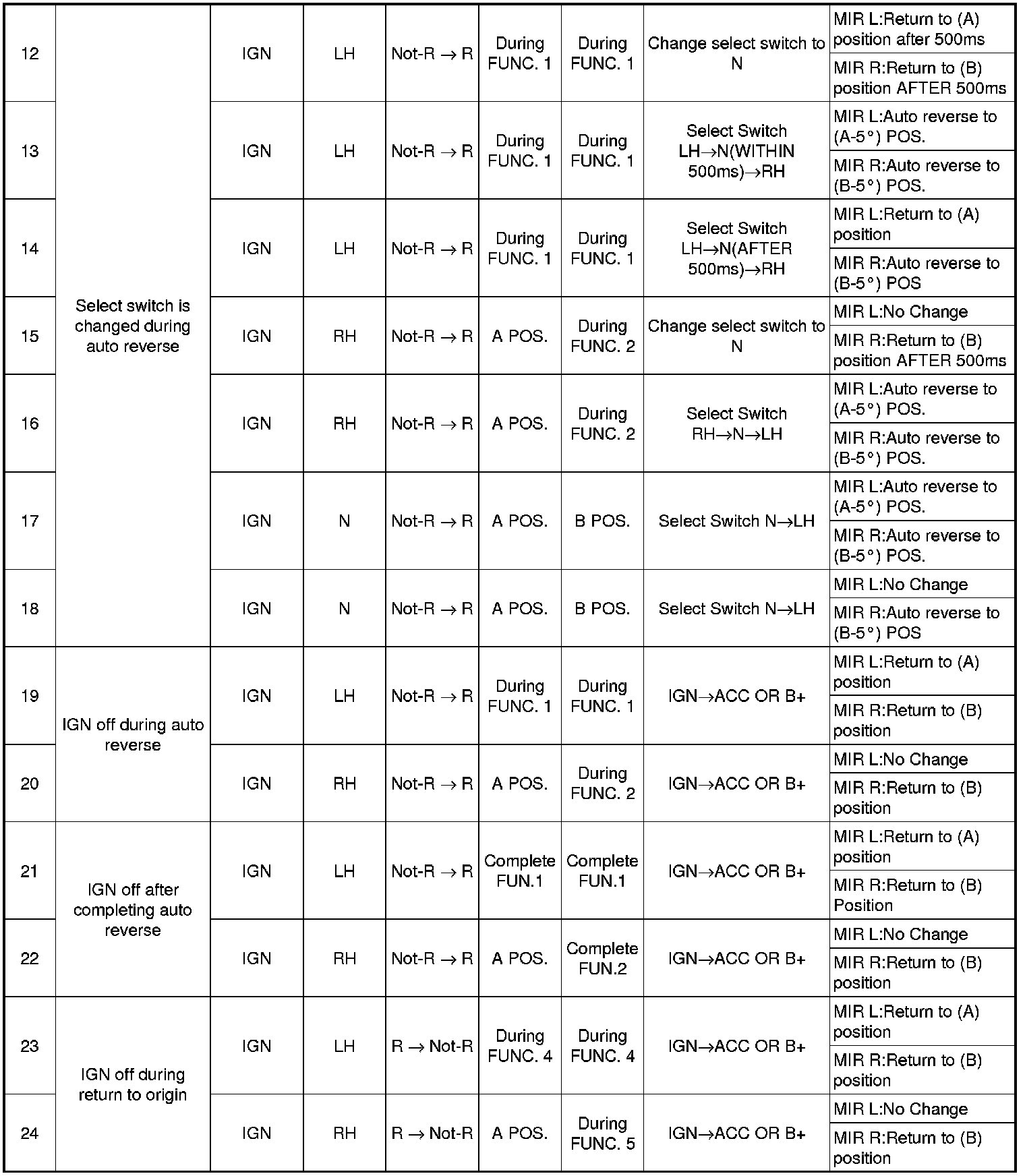 (1) When the each position switch is pressed at the ON state of the IGN2, the mirror shall be positioned according to the memorized value.