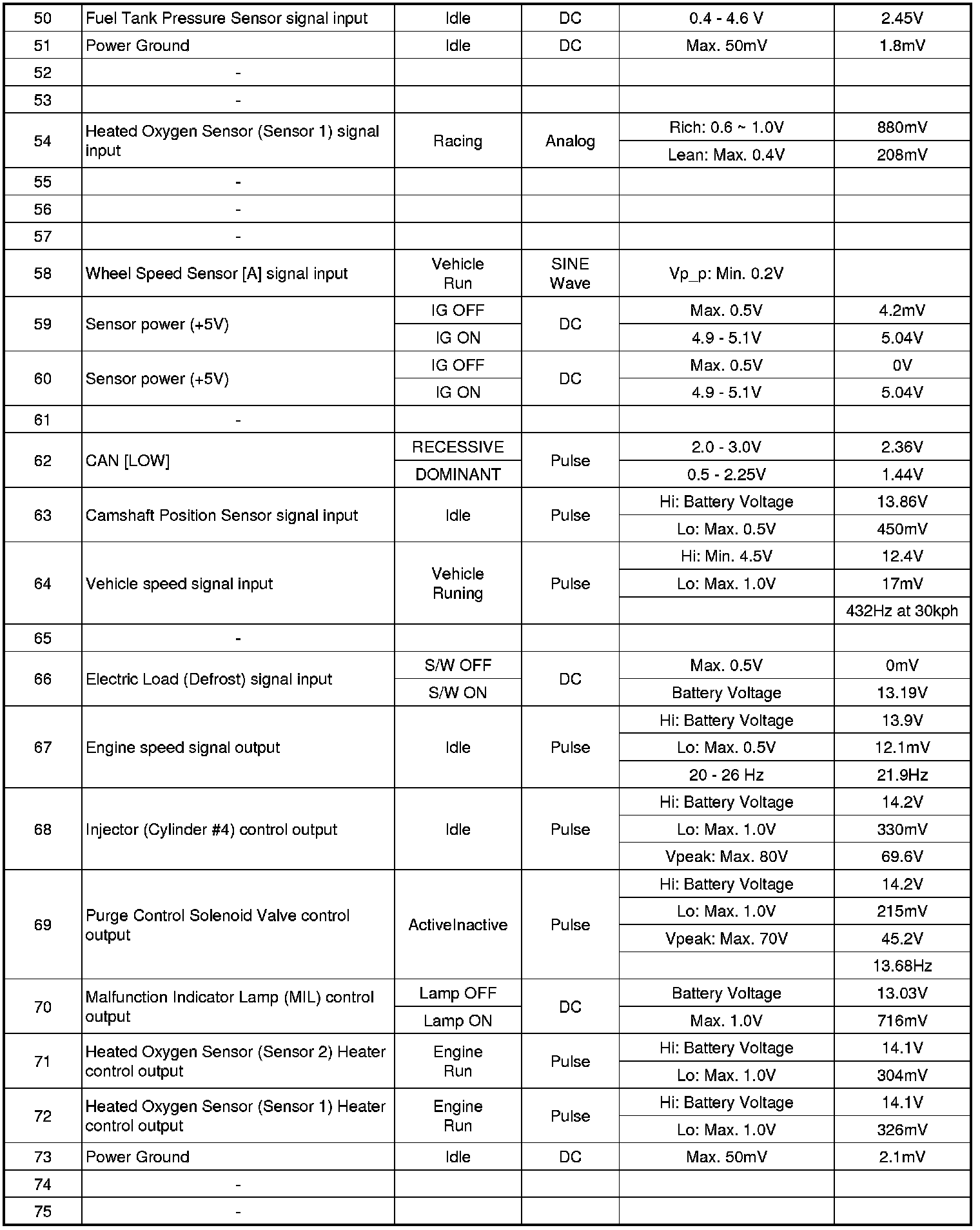 Home >> Hyundai >> 2011 >> Accent L4-1.6L >> Repair and Diagnosis >> Powertrain Management >> Computers and Control Systems >> Engine Control Module >> Specifications