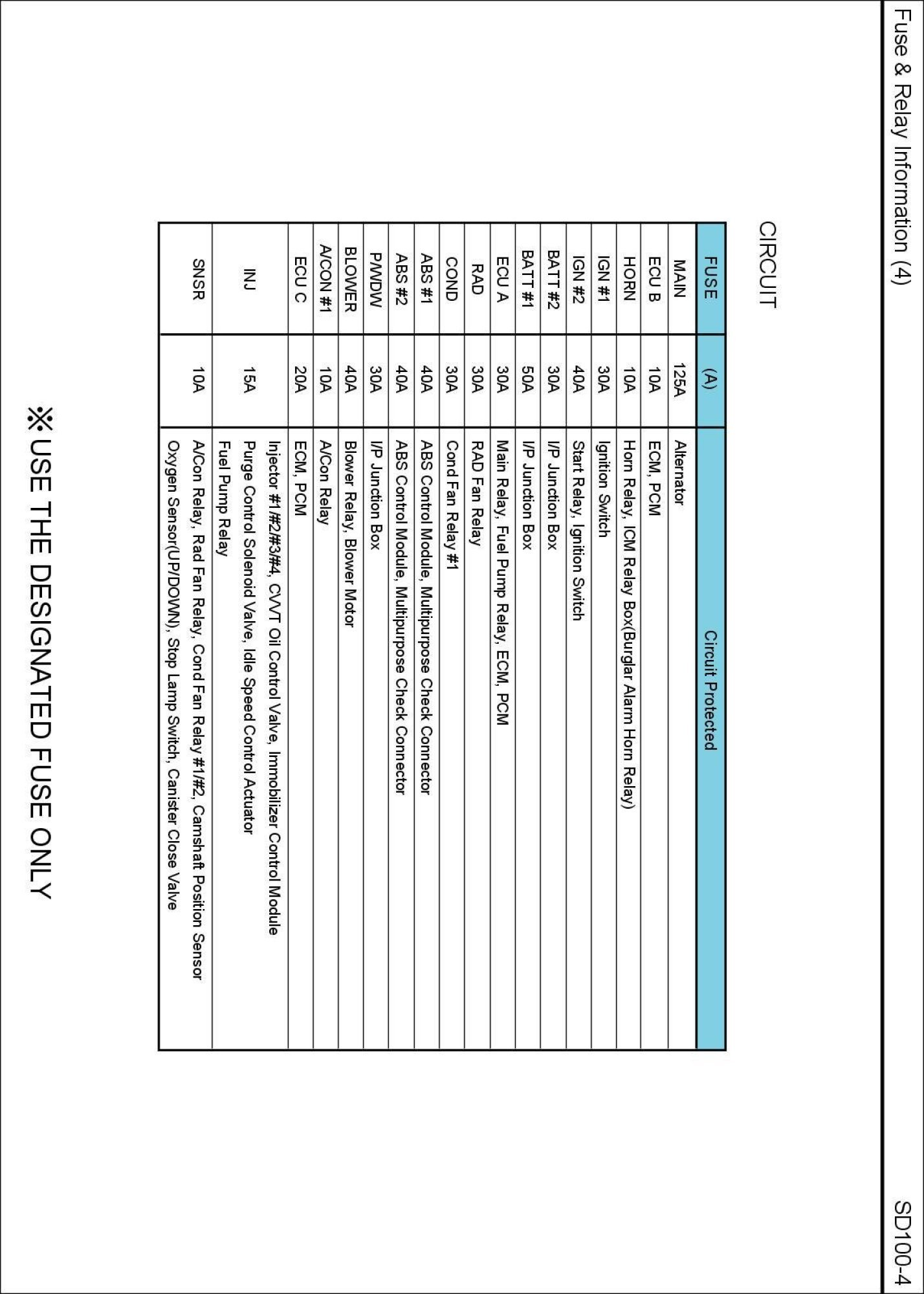 E/R Fuse & Relay Box Circuit Details: