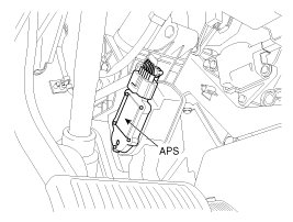 Accelerator Position Sensor (APS) is installed on the accelerator pedal module and detects the rotation angle of the accelerator pedal. The APS is one of the most important sensors in engine control system, so it consists of the two sensors which adapt individual sensor power and ground line. The second sensor monitors the first sensor and its output voltage is half of the first one. If the ratio of the sensor 1 and 2 is out of the range (approximately 1/2), the diagnostic system judges that it is abnormal.