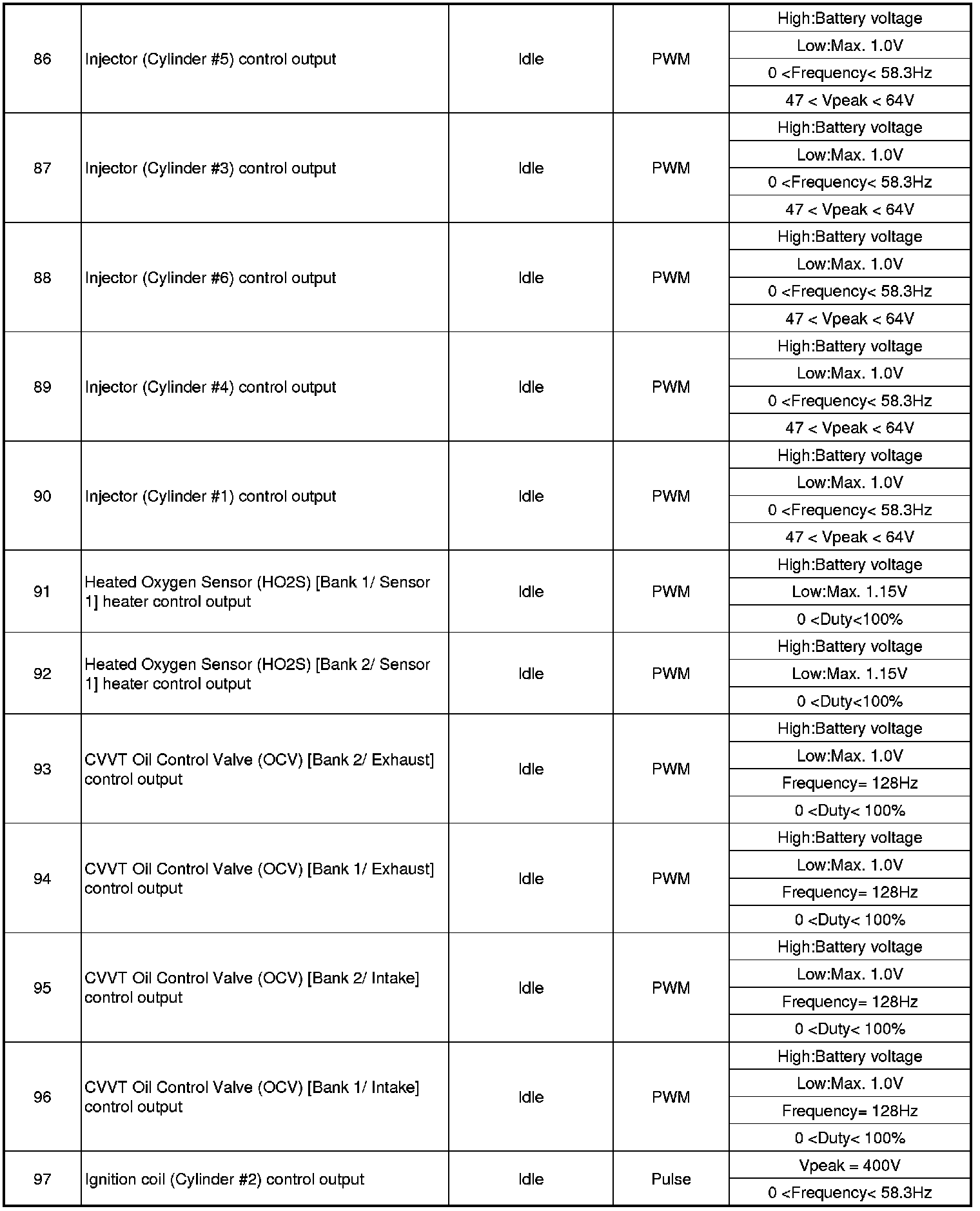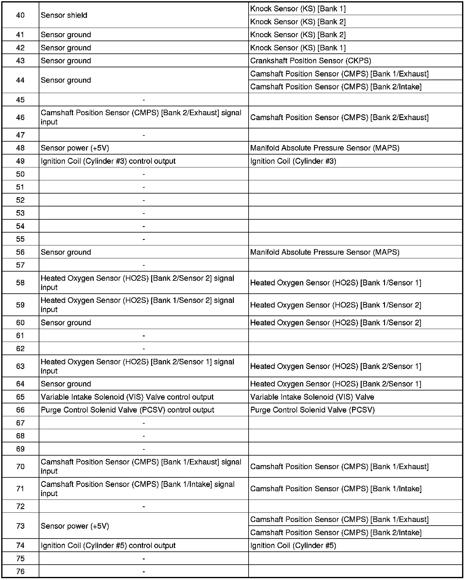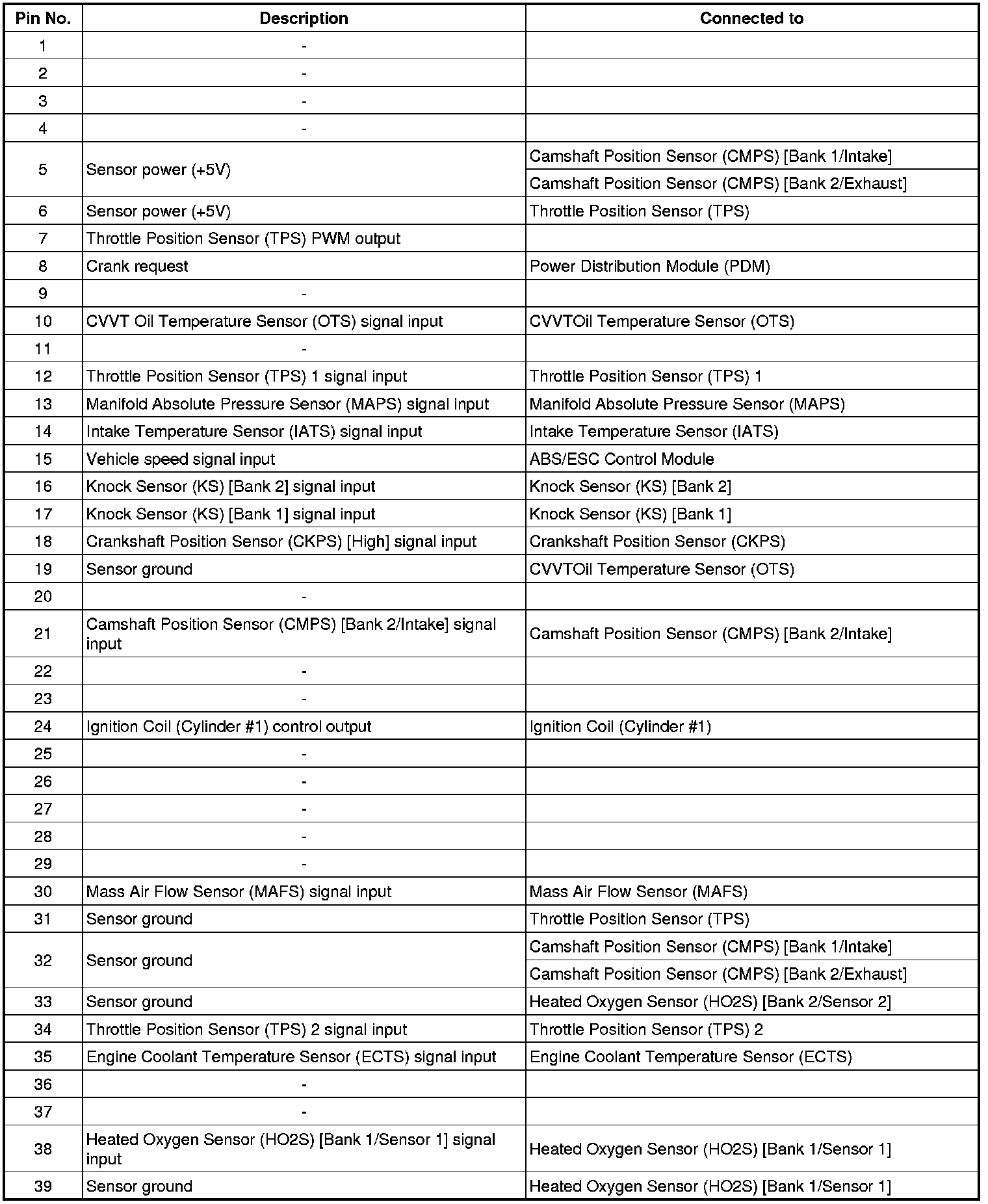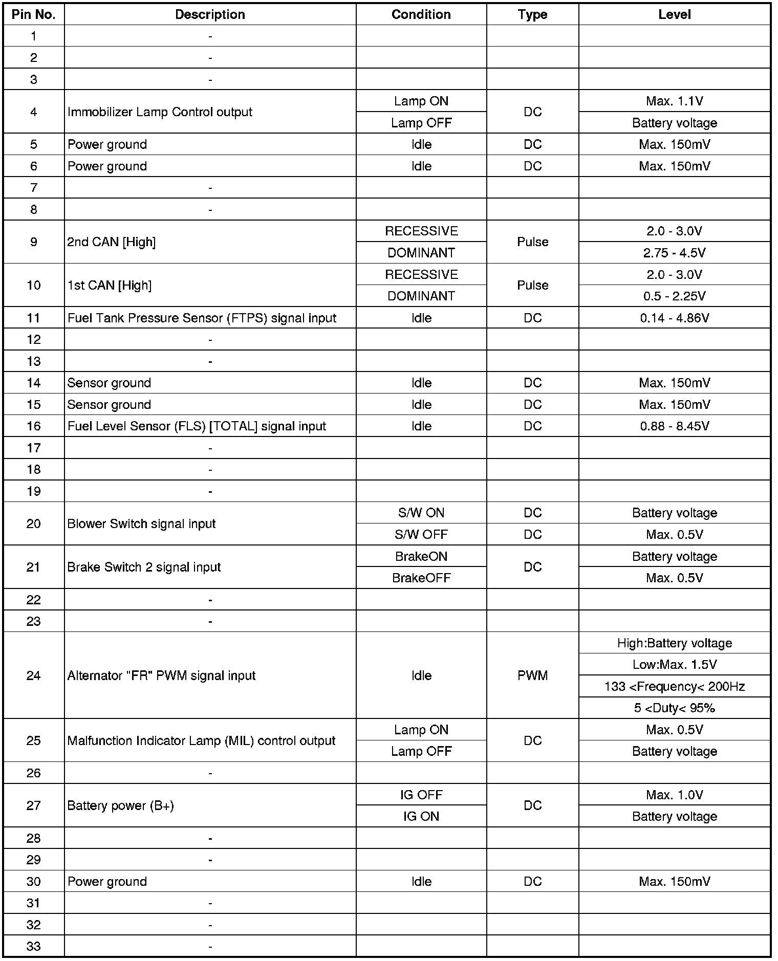 ECM Terminal Input/Output Signal