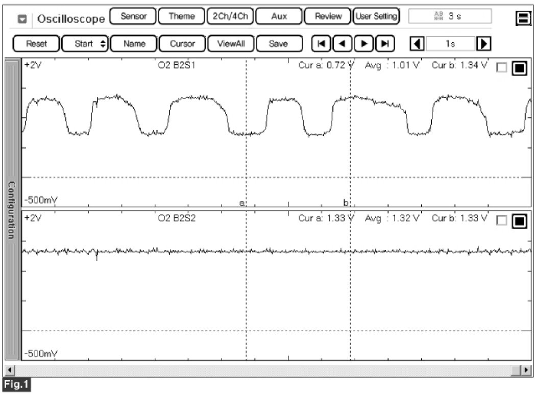 Fig 1) Normal waveform of front HO2S (Sensor 1) and rear HO2S (Sensor 2).