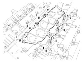 Tighten the intake manifold bolts and nuts, in several passes as below.