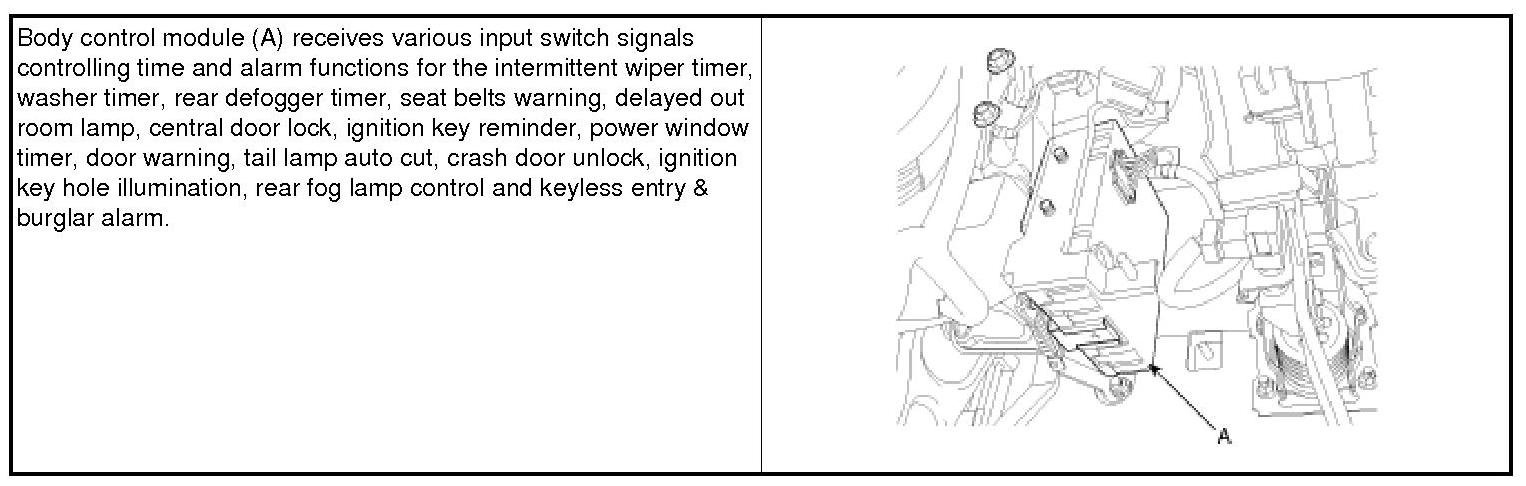Home >> Hyundai >> 2011 >> Azera V6-3.8L >> Repair and Diagnosis >> Relays and Modules >> Relays and Modules - Powertrain Management >> Relays and Modules - Computers and Control Systems >> Body Control Module >> Description and Operation >> Body Control Module (BCM)