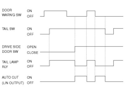 (2) With the ignition switch ON, if the Driver door is opened and the ignition is switched to OFF, the tail lamp should be automatically turned OFF.