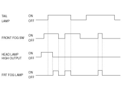 In case of (IGN 2 = ON) & (HEAD LAMP LOW OUTPUT = ON) & (HEAD LAMP HIGH OUTPUT = OFF) status, if front fog switch input is detected (LIN communication), front fog lamp relay output is turned ON.