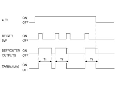 If alternator input is changed to low, defogger outputs should be turned OFF immediately.