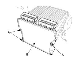 4. After removing the installation bolts (A), remove the ECM (B) from the air cleaner.