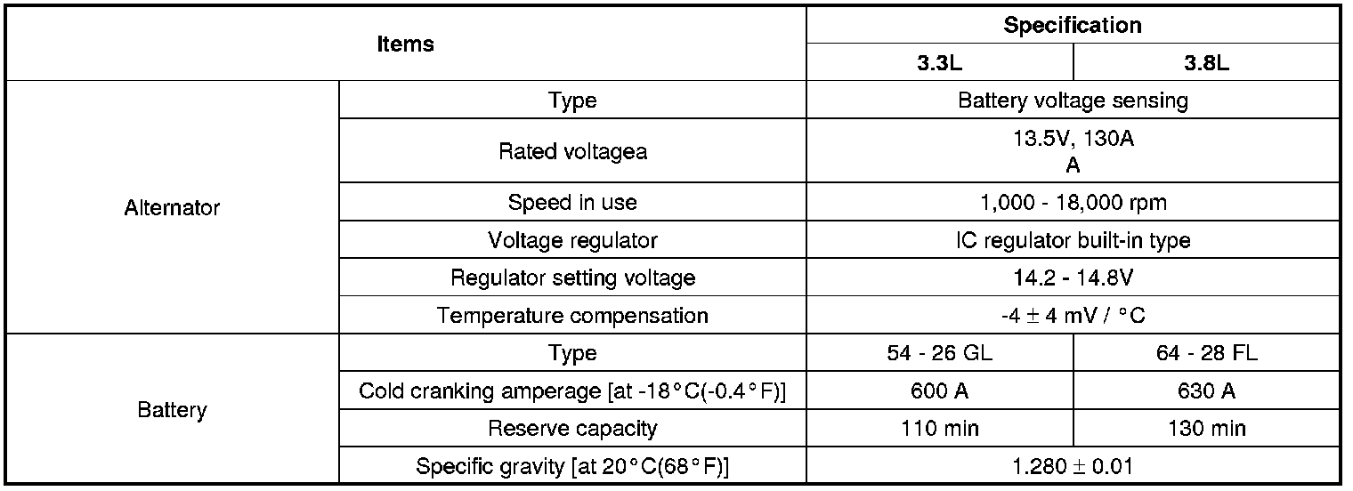 Home >> Hyundai >> 2011 >> Azera V6-3.8L >> Repair and Diagnosis >> Starting and Charging >> Charging System >> Specifications