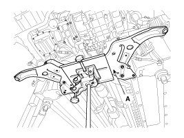 7. Remove the cross member from the body by loosening the roll rod (A) mounting bolts and nuts.