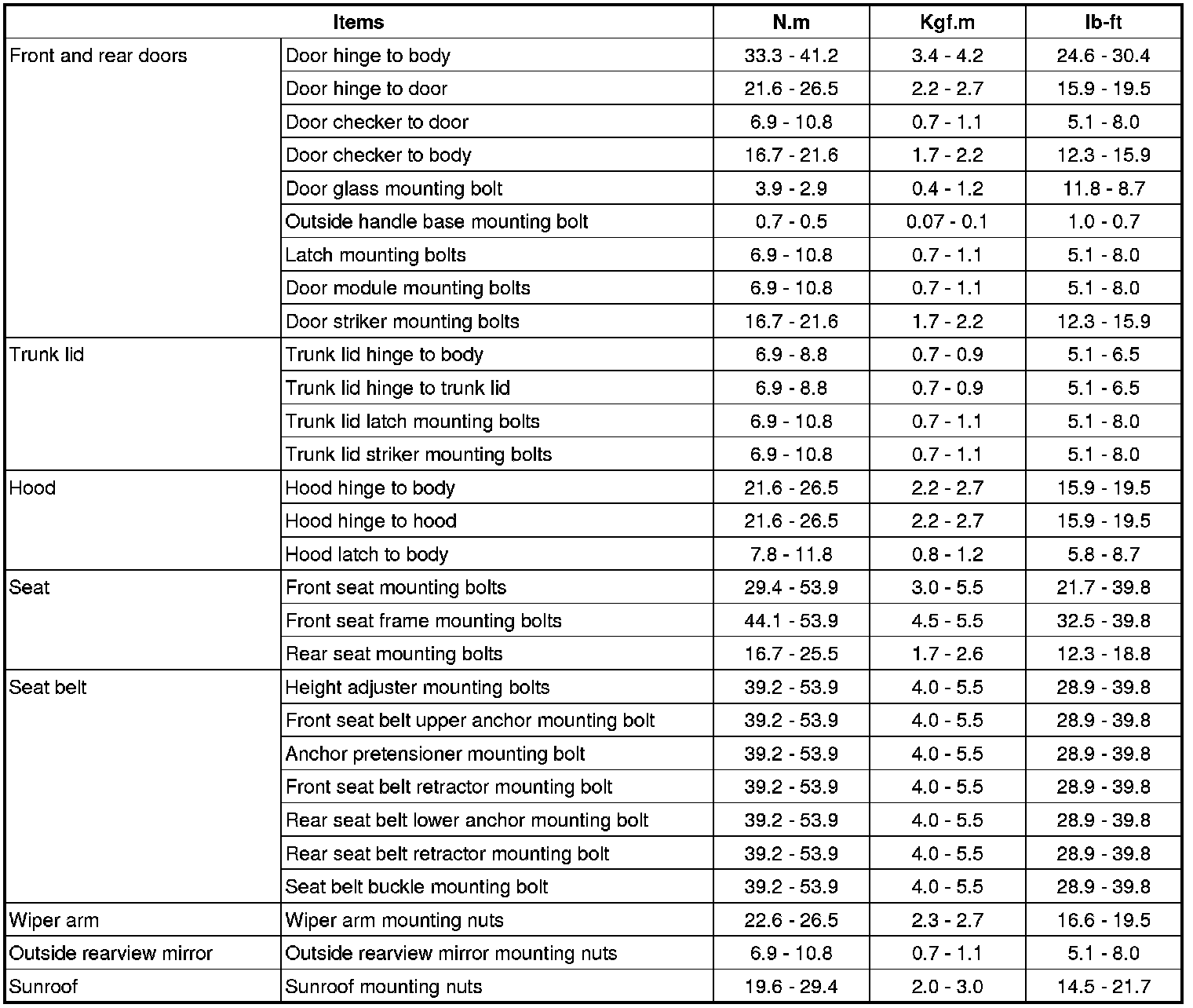 Tightening Torque
