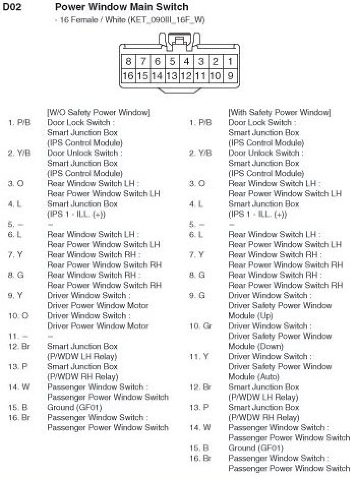 D02 Power Window Main Switch: