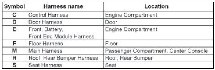 * Depends on vehicles, it is necessary to check the harness name symbol on the harness layouts for detailed symbol.