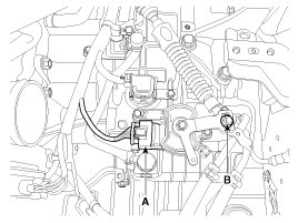 6. Remove the manual control lever (B) and the washer after removing a nut (A).