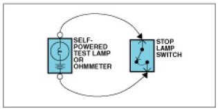 Use a self-powered test lamp or an ohmmeter to check for continuity.