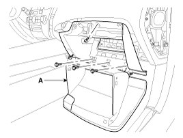 2. After loosening the mounting screws and bolts, then remove the glove box (A).